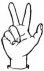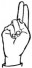 На ћирилици написано ВУКОСЛАВ ШКРЕБИЋ састоји се из 15 слова [?]. Исписано ћириличном једноручном азбуком за глувонеме: